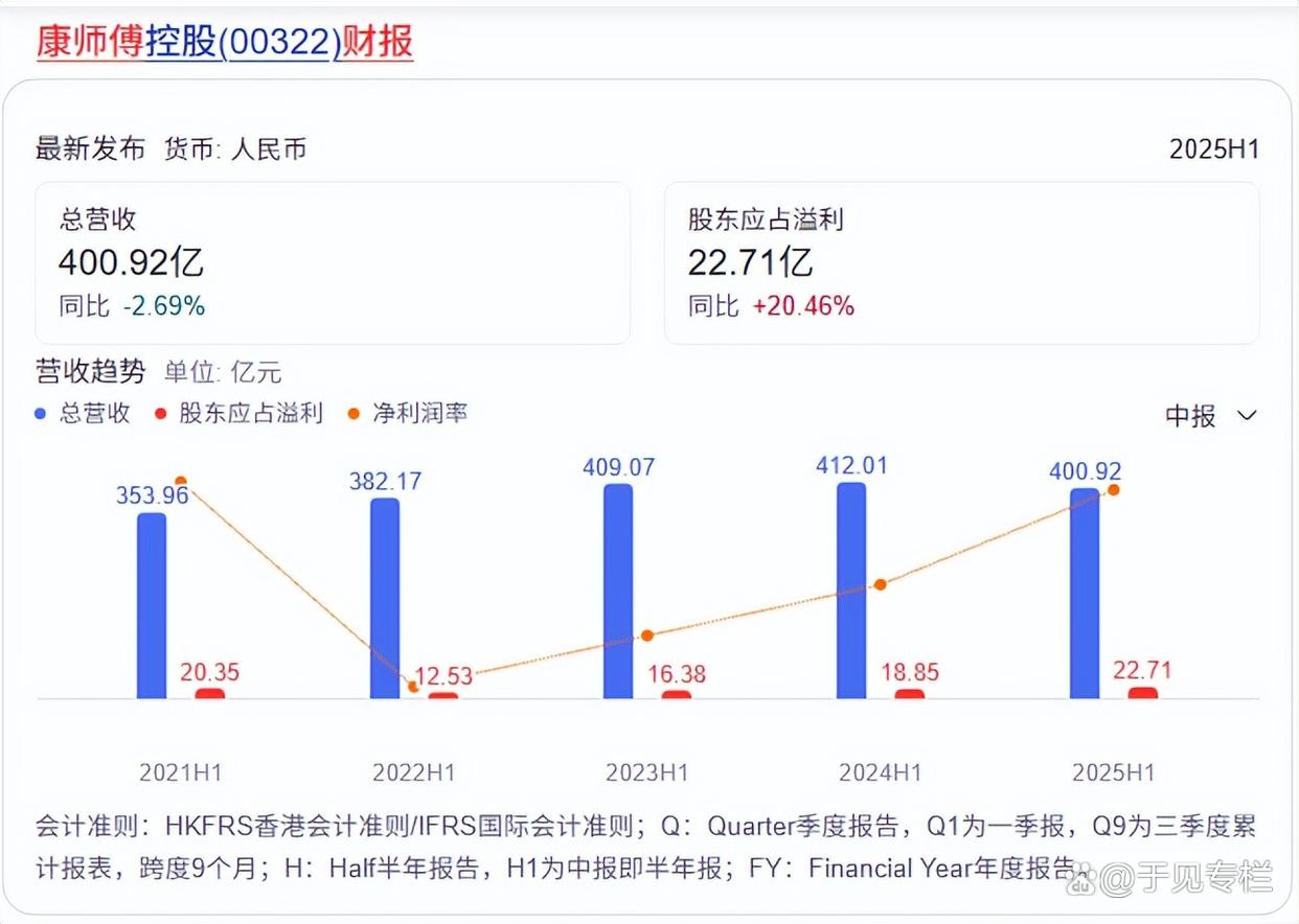 另一方面,盈利端的增长同样暗藏隐忧。2025年上半年,康师傅净利润虽实现20.5%的同比增长,达22.71亿元,但这一增长并非源于核心业务的内生发力,支撑因素存在明显局限。其中部分得益于原材料成本下行、产品提价带来的毛利率改善,同时也依赖出售附属公司获得的一次性收益。这种依靠“节流”与非经常性收益撑起的增长模式,自然让市场对其盈利能力的可持续性产生疑虑。