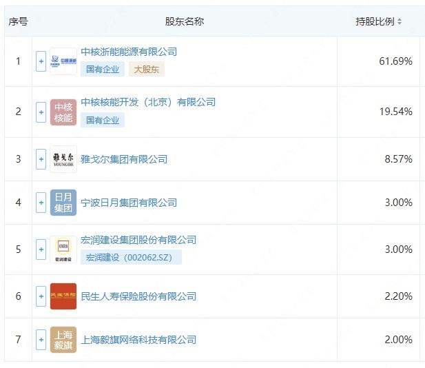 引发外界关注的,是该项目的股东名单。除了中国核电旗下的中核浙能能源有限公司、中核核能开发(北京)有限公司两大央国企,股东还有宏润建设、雅戈尔集团、宁波日月集团、阿里巴巴旗下上海毅旗网络科技有限公司等知名的民企,共同持股的比例超过18%,且以浙江民资为主。
