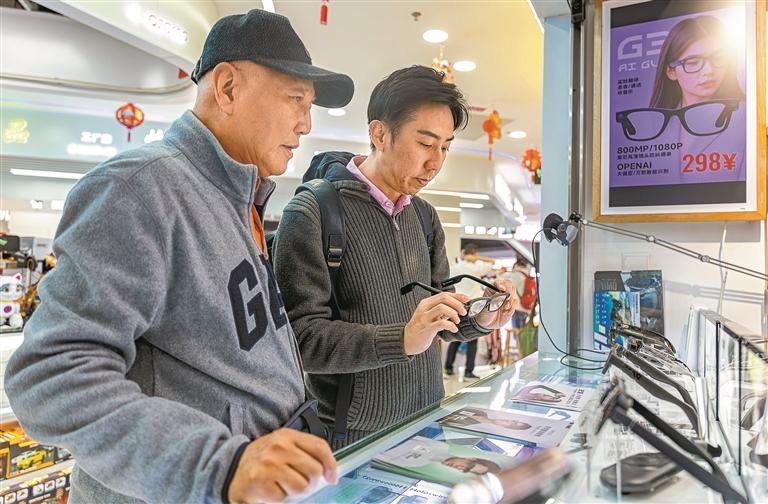 客商在华强北选购AI眼镜。深圳特区报记者杨浩翰摄