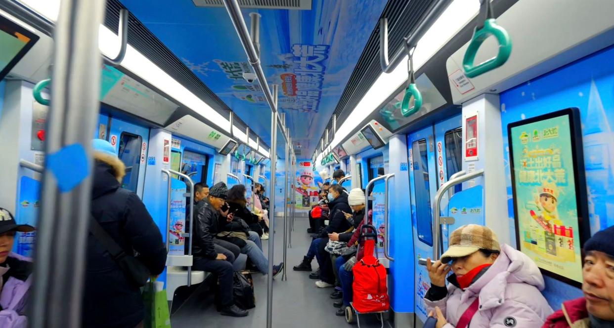 “沃土出好品、健康北大荒。”走进地铁二号线,充满北大荒特色与冰雪元素的主题车厢更是成为移动的“黑土文化展厅”。车厢内壁装饰着北大荒黑土地、与冰雪景观的融合画面,雪人、森林等位置巧妙融入“黑土优品”品牌理念,既契合哈尔滨冰雪旅游的城市氛围,又将龙江现代农业的发展成果具象化呈现。“坐地铁就像走进了冰雪田园,一下子就感受到了黑龙江农产品的天然与纯粹。”来自浙江的游客随手拍下车厢画面分享至社交平台,引发不少网友对“黑土优品”的关注。