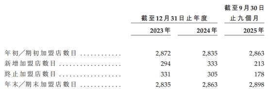公司加盟店的数目及变动,图片来源于招股书