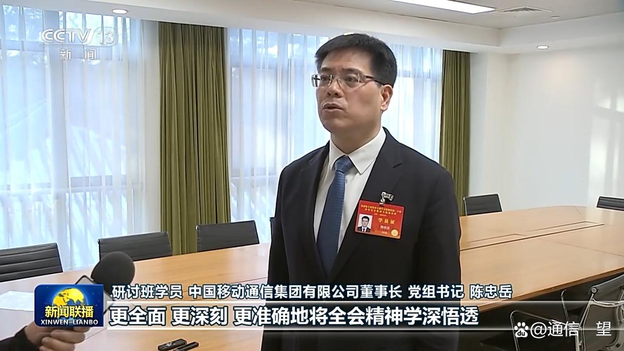 1月23日,《新闻联播》播出了省部级主要领导干部学习贯彻党的二十届四中全会精神专题研讨班结业。在结业式上,10名学员代表作交流发言,其中,中国移动通信集团有限公司董事长、党组书记陈忠岳的发言备受关注。