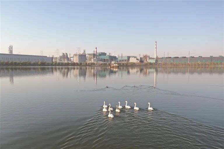 如今,走进晋南钢铁厂区,绿树成荫,光伏设施错落有致,零碳运输车辆穿梭其间,入眼是一幅生机勃勃的画卷……若是秋冬季到访,还能看见上百只天鹅优雅划过太子湖的美景,它们洁白羽翼与远处高炉剪影互相映衬的画面,正是晋南钢铁绿色发展、与自然和谐共生理念的最好见证。