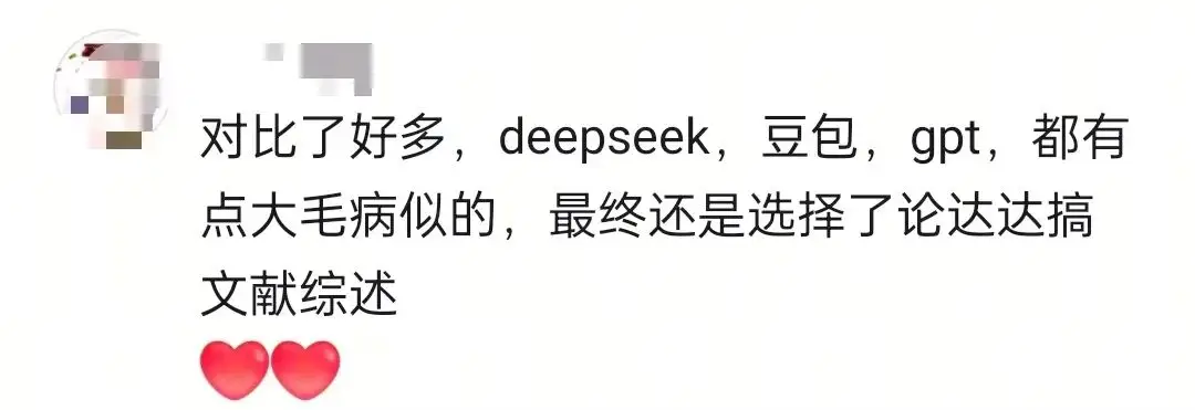 此外,对于某些用户的特定需求,当前市面上主流的C端应用大模型可能都不好用。有网友表示,在论文综述方面,无论是DeepSeek,还是豆包,抑或GPT均不好用。