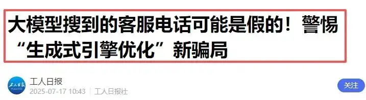据工人日报此前报道,有金融黑灰产组织通过干扰大模型、产出虚假金融机构客服电话,让一些用户误信错误电话,从而上当受骗。