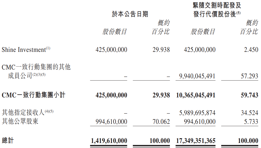 此次交易前,华人文化通过Shine Investment持有邵氏兄弟29.94%的股权,是该公司第一大股东,此次发行完成后,华人文化的持股比例将提升至59.74%,仍为公司第一大股东。阿里巴巴、腾讯控股等接收人的持股比例将增至34.52%。