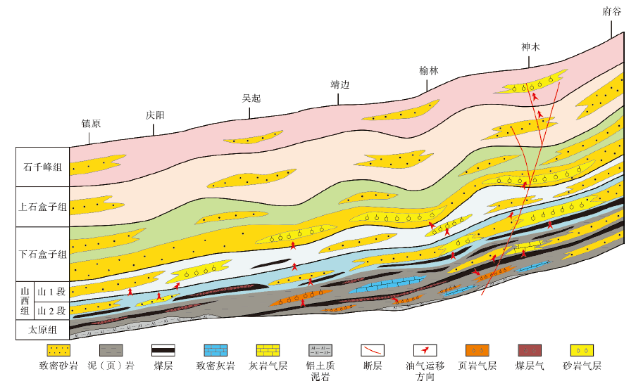 图5鄂尔多斯盆地上古生界天然气成藏剖面(据文献[48]修改)
