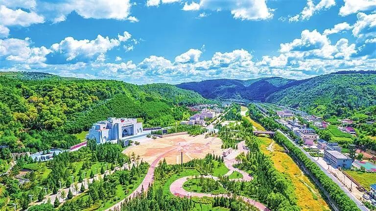 蓝天白云下的南梁红色小镇。刘永刚