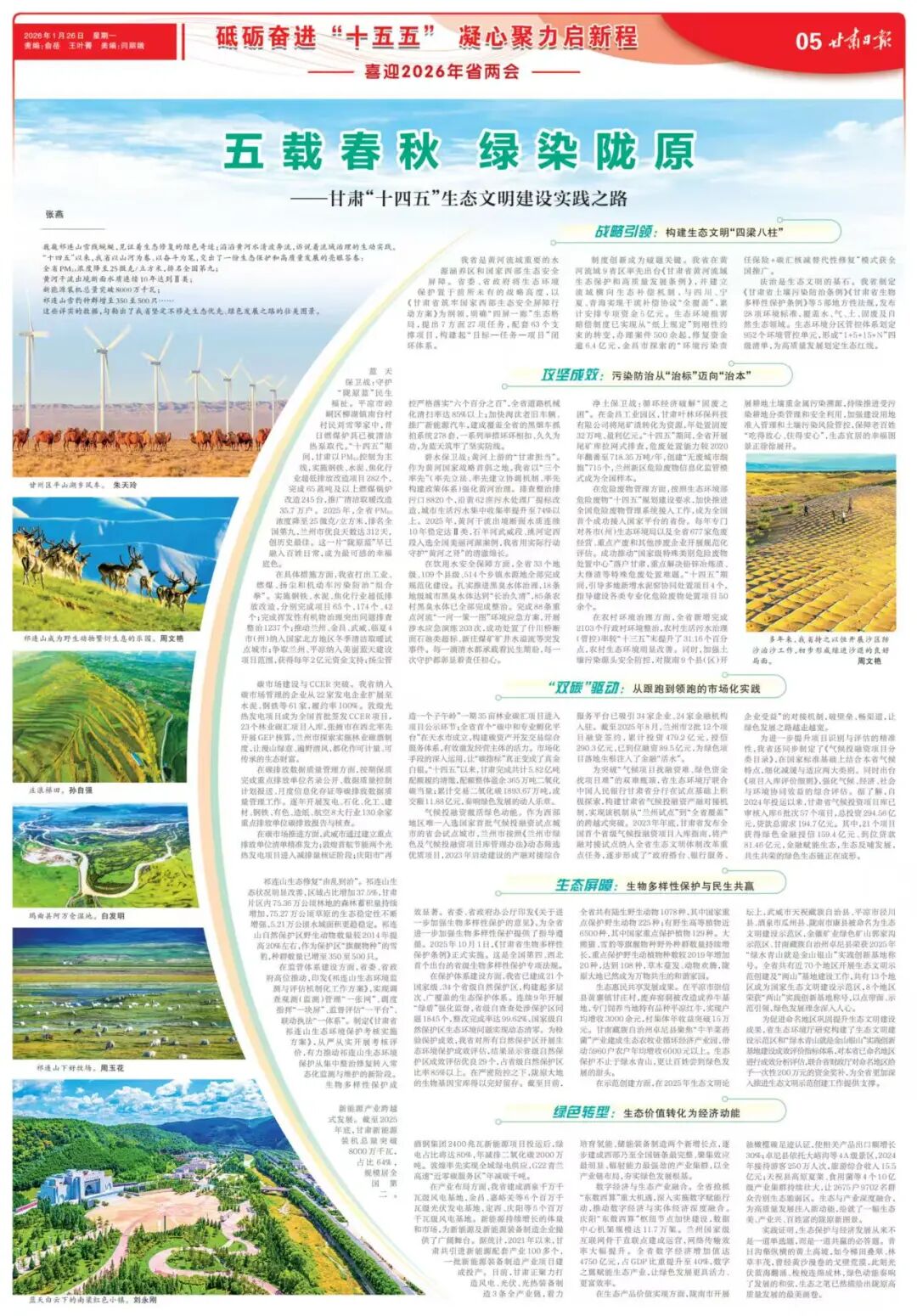 《甘肃日报》专版:五载春秋 绿染陇原——甘肃 “十四五” 生态文明建设实践之路