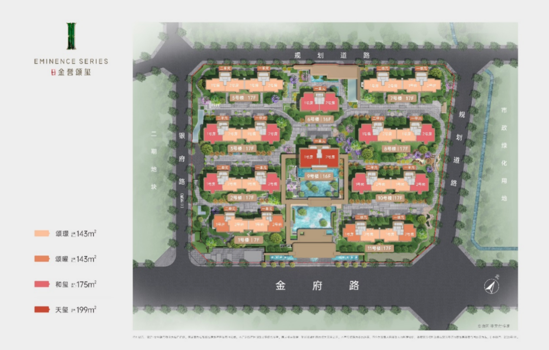 项目整体分两期开发,目前呈现是项目一期,占地52亩,该期涵盖143㎡、175㎡、199㎡三个面积段的新规产品,四房三卫起步的空间格局,以及舒适度拉满的超高得房率,吻合高改客群“要换就一步到位”的需求。