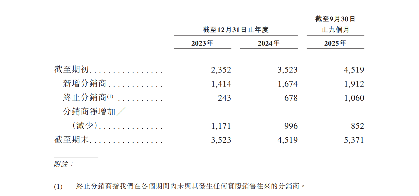 分销商退出数量成倍增长,新增数量并没有保持同步,导致海大国际净增加的分销商逐年减少。2023年公司分销商净增加1171家,2024年已经不足千家,2025年前三季度净增加852家。