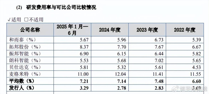 研发费用率在同行中垫底。报告期内,拓普泰克研发费用分别为2,099.09万元、2,186.66万元、2,880.57万元、1,870.88万元,研发费用率分别为3.69%、2.83%、2.78%、3.29%。