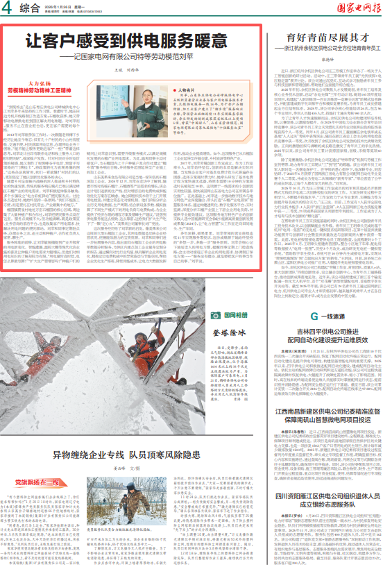 ▲《国家电网报》2026年1月26日4版版面图