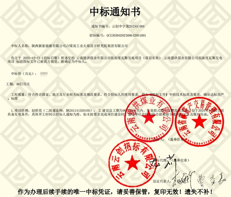近日,陕西省煤层气新泰能源公司成功中标云南恩洪煤业有限公司低浓度瓦斯综合利用项目,标志着企业首次挺进省外瓦斯发电市场,开启瓦斯综合利用领域跨区域布局新篇章。