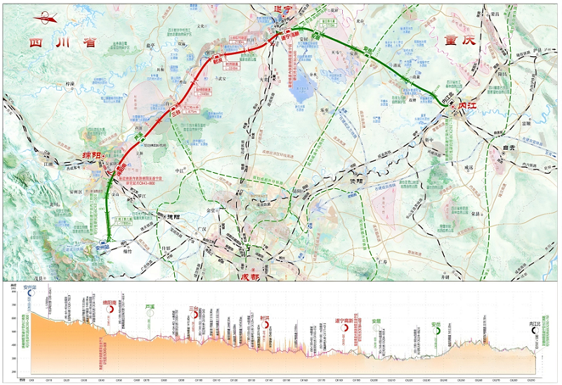 最后,它是成渝地区双城经济圈建设的战略支撑。该项目早在2015年就已纳入国家相关规划,是国家“十四五”铁路发展规划的重点项目。它作为成渝地区双城经济圈多层次轨道交通网的重要组成部分,将有力推动川中地区深度融入国家发展大局,为成渝地区中部崛起注入强劲动力。