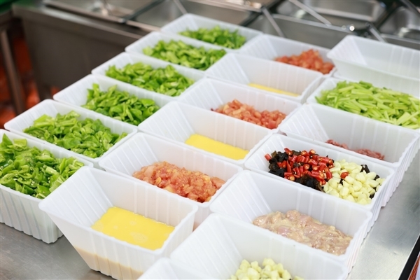 对比传统模式,七鲜小厨门店内省去了洗切配的动作,开袋现炒,保障了食材的干净卫生,让用户能够吃的更放心。