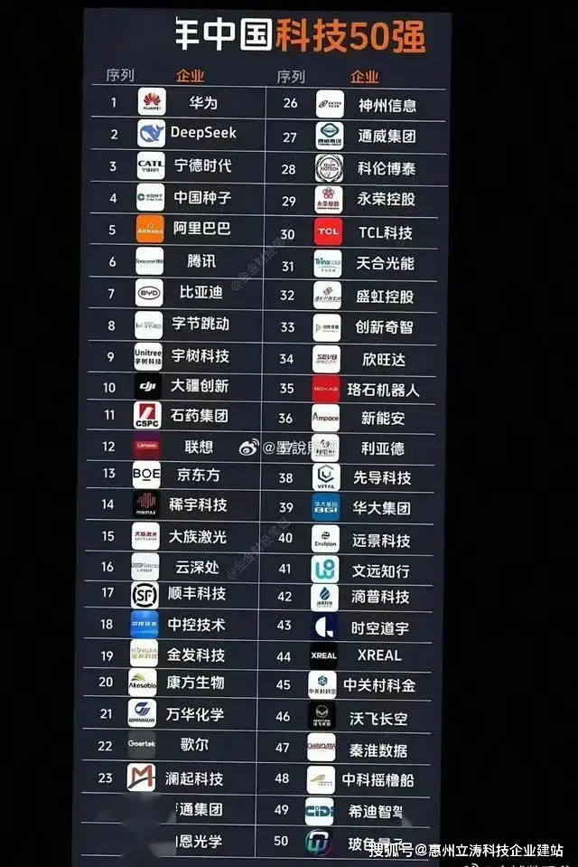 科技圈最近炸锅了!2025年中国科技50强榜单新鲜出炉,结果让人大跌眼镜。华为依旧稳坐头把交椅,这倒不出所料。但真正让人惊掉下巴的是,一家AI领域的黑马企业竟然超越了曾经如日中天的宁德时代,杀入前三甲!这背后到底发生了什么?科技行业的格局真的要变天了吗?