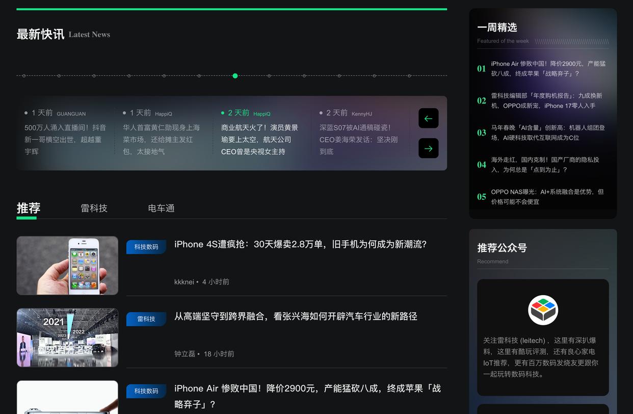 雷科技官网全新升级:从视觉到内容,全方位聚焦AI硬科技