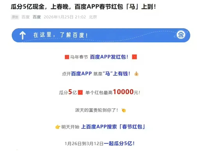 腾讯发10亿红包,百度发5亿红包,今年的春节红包大战提前打响,比往年更有看点。