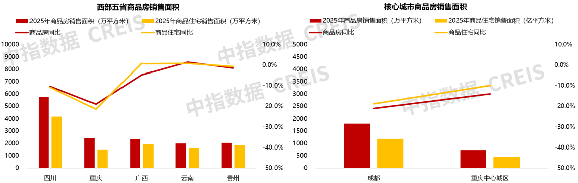 《报告》指出,2025年西部房地产市场整体处于筑底调整期。四川商品房成交量同比下降约一成,广西、云南、贵州等地降幅较小。核心城市土地供应呈现“提质缩量”特征,成都、重庆市场规模虽有收缩,但仍居全国前列。