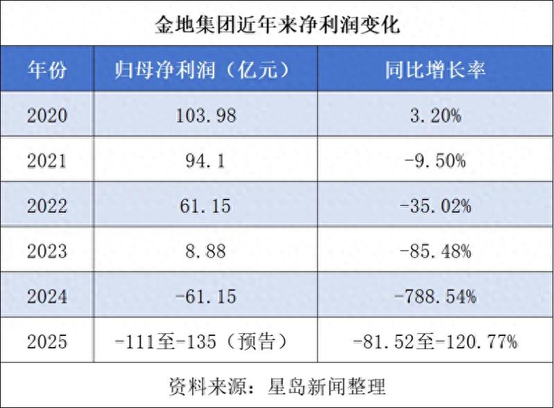 事实上,自2020年起,金地集团归母净利润便呈现持续下滑态势,2024年更是首次录得亏损(归母净利润亏损61.15亿元)。相较之下,2025年该公司盈利水平进一步恶化,净亏损额显著扩大。