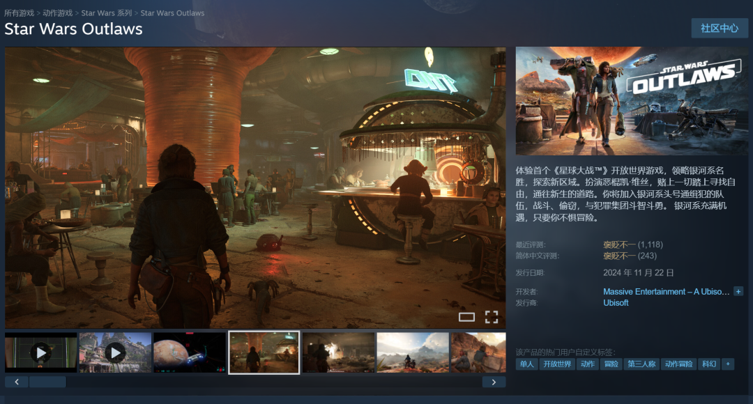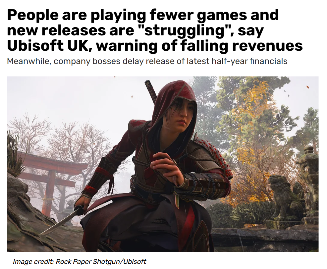 反映到新品层面,其《星球大战:亡命之徒》《不羁联盟》等新游的市场表现未达预期,同时育碧的核心IP《刺客信条:影》因选角、文化争议问题陷入口碑两极分化(Steam国区近期评分为褒贬不一)。而在此之前,形容游戏工业流水线化、玩法高度重复的社区黑话“育碧罐头”,其实也多少体现出玩家对于育碧近几年新品的不满。