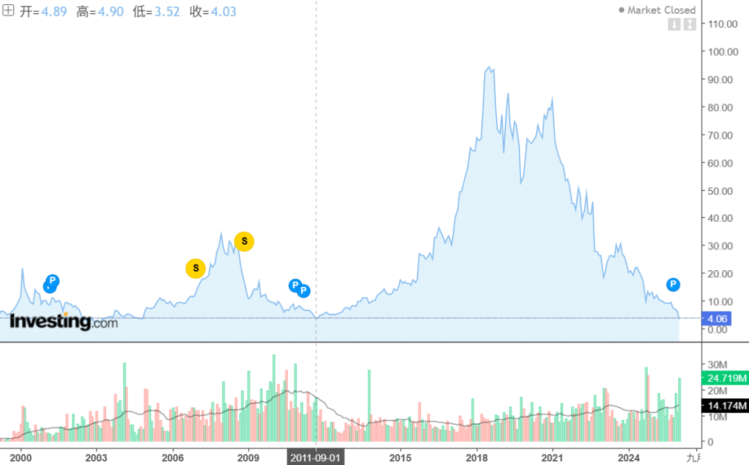 换句话说,只短短一天,育碧过去近15年的涨幅几乎彻底化为乌有。而其当下的股价,也距离最高点跌去了96%。
