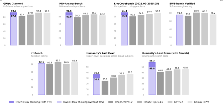 2026年1月26日,阿里云正式发布旗舰推理模型Qwen3-Max-Thinking,性能爆表,甚至在多项全球权威评测中超越GPT-5.2、Gemini 3 Pro,成为首个真正意义上性能最接近国际顶尖模型的国产AI大模型。