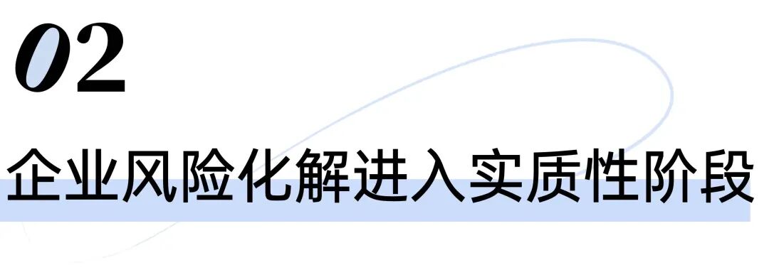 在一系列政策引导下,房企回归正常经营轨道的环境支撑更加稳固,目前企业风险化解已进入了实质性阶段。