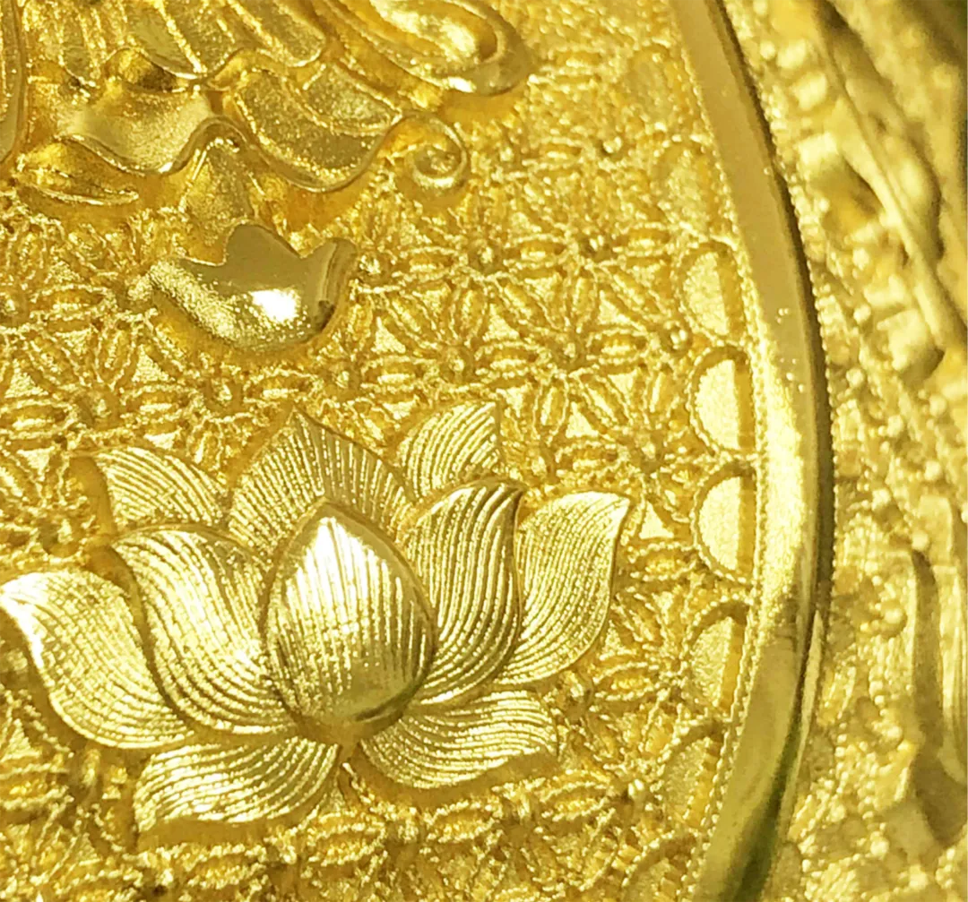 更特别蕴含10mg足金,黄金的贵气属性尽显,莲瓣纹、八宝纹层次分明,立体逼真!