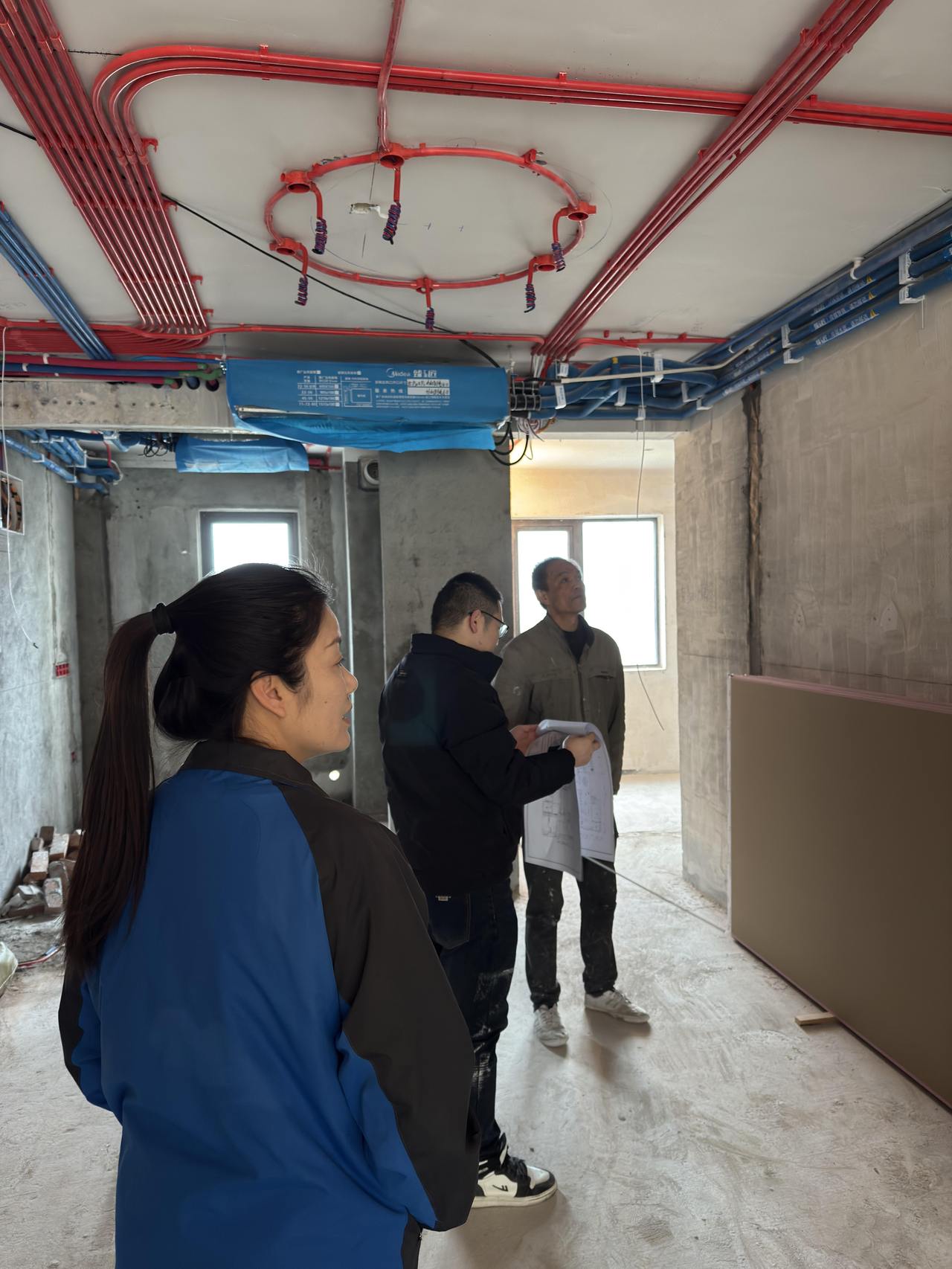 冷美玲(左一)的新家已完成水电装修。受访者供图