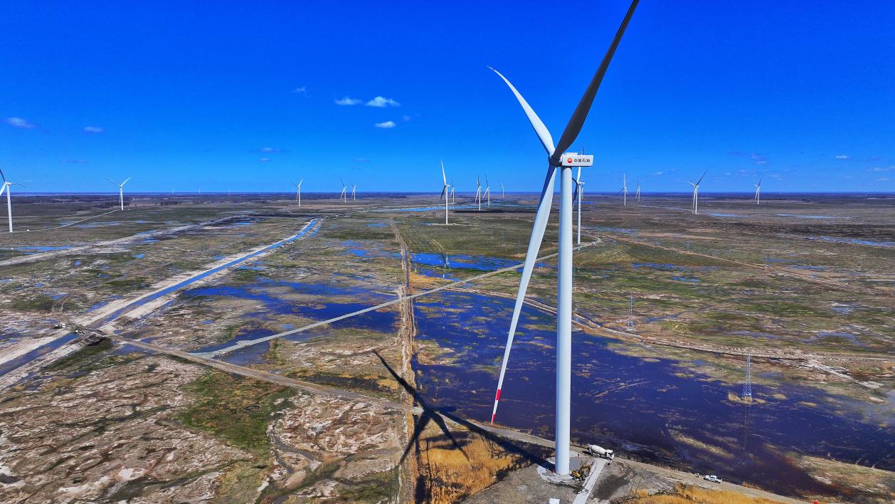 中国石油吉林油田昂格55万千瓦风电项目生产现场,张旭摄图。中国石油供图