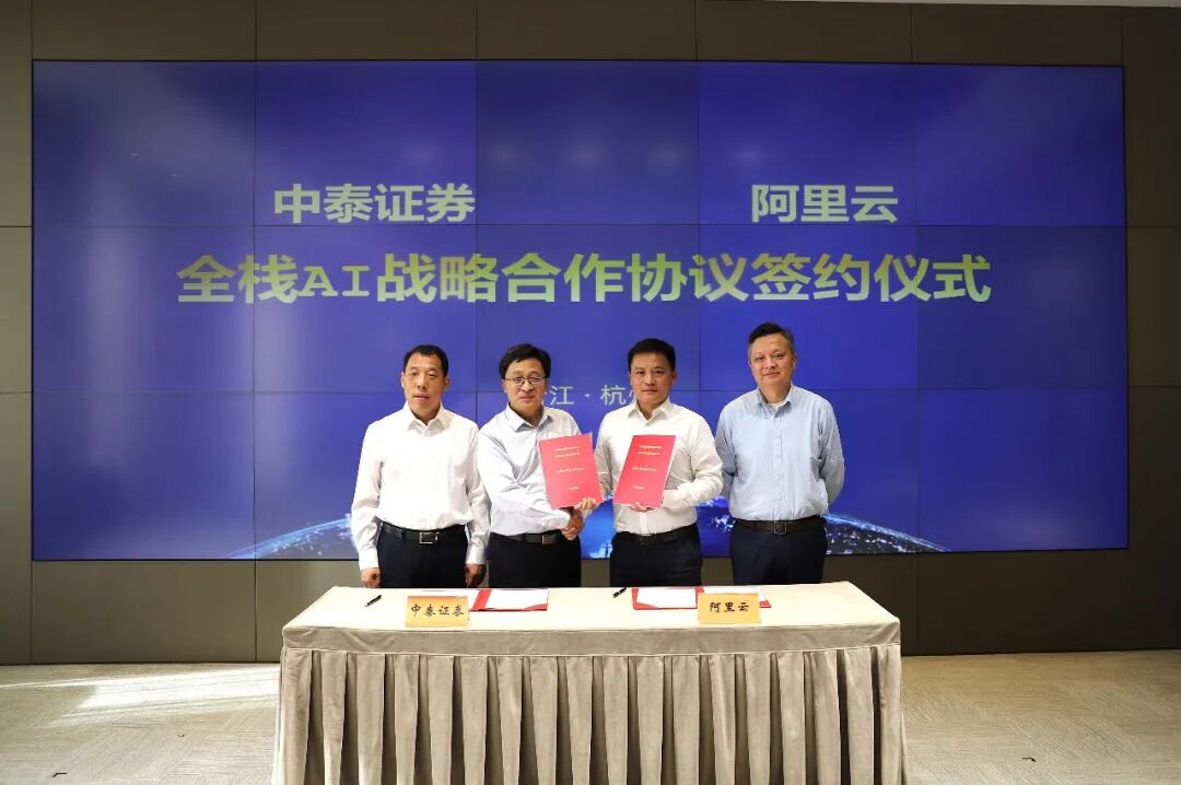 1月16日,中泰证券与阿里云计算有限公司(以下称“阿里云”)全栈AI战略合作签约仪式在杭州举行。双方将携手构建多层次、全方位、长期性的战略合作伙伴关系,共同探索金融科技新范式,树立证券行业与互联网生态协同发展的新标杆。