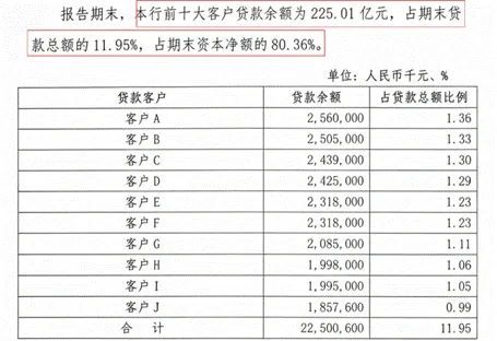 早在2018、2019年,张家口银行的“最大十家客户贷款比率”已经连续两年高于50%监管要求。到2024年,前十大单一客户的贷款余额为225.01亿元,占比贷款总额的11.95%,占资本净额的80.36%。