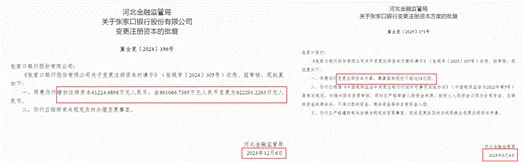 从资本实力来看,张家口银行的两次增资扩股都表现不错,资本实力得到增强。2024年底,它就进行过一次增资扩股,由张家口市财政局出手增持,最终获得6.12亿元的增资金额,注册资本由86.11亿元增至92.23亿元。