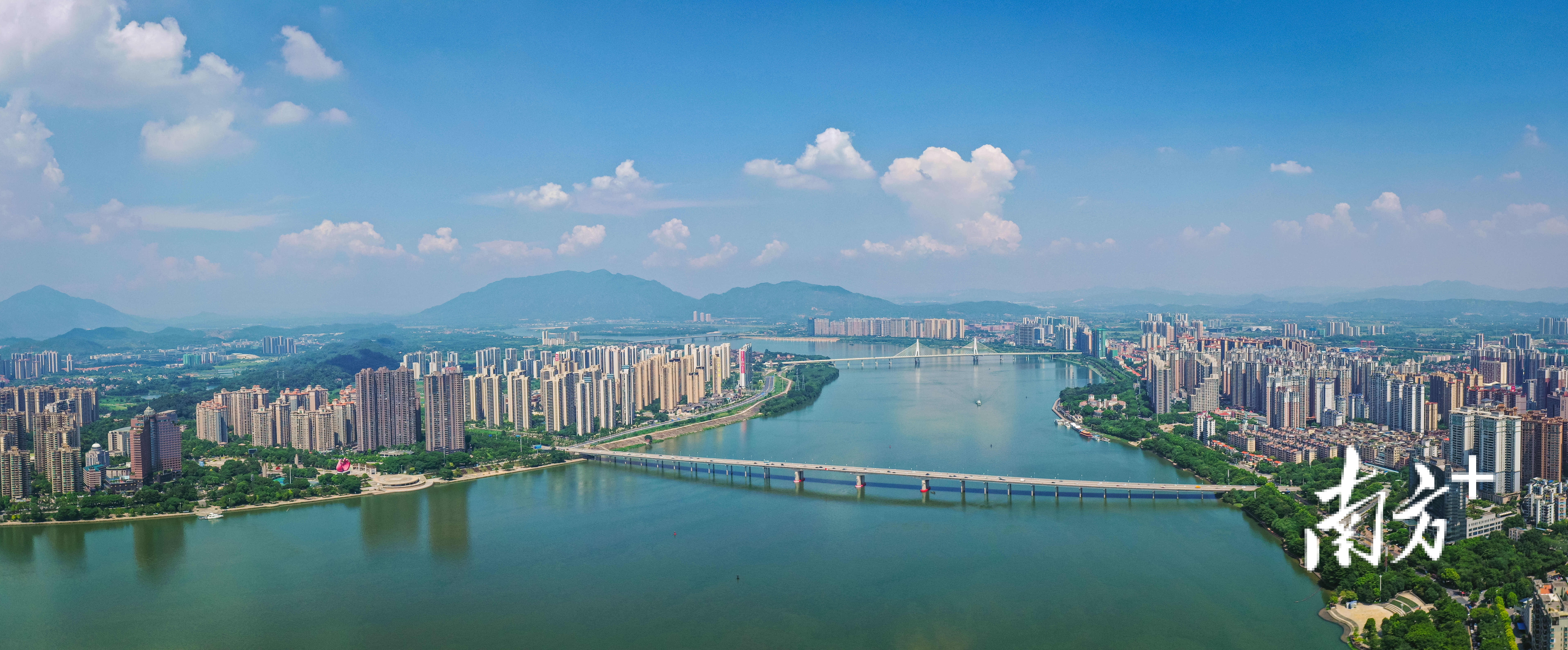 报告提出要加快广清高质量一体化,打造广清共同富裕典型区,探索广州北部与清远南部板块同城化合作。图为清远市区城市风光。