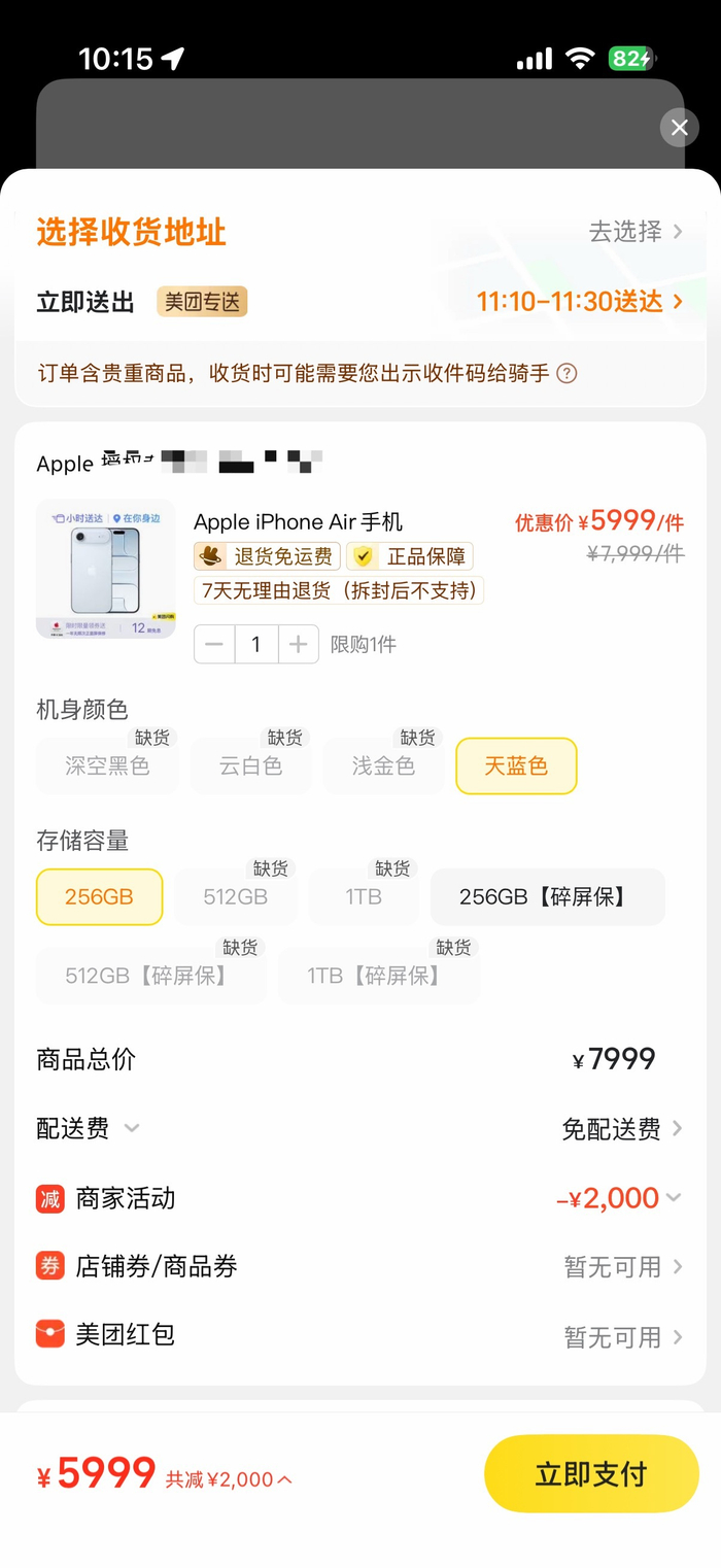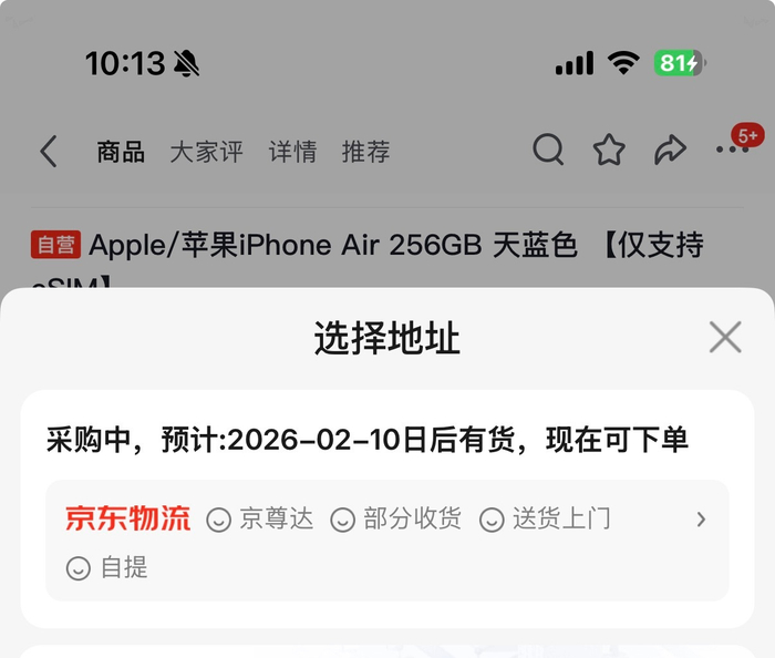 iPhone Air降价后线上缺货,天猫6天发货最快