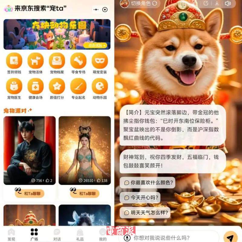 值得一提的是,此前,京东在AI社交上早有布局。如京东App内有两款AI社交产品,分别名为“宠TA”和“聊愈小宇宙”,在京东App中搜索同名即可跳转至产品服务界面。