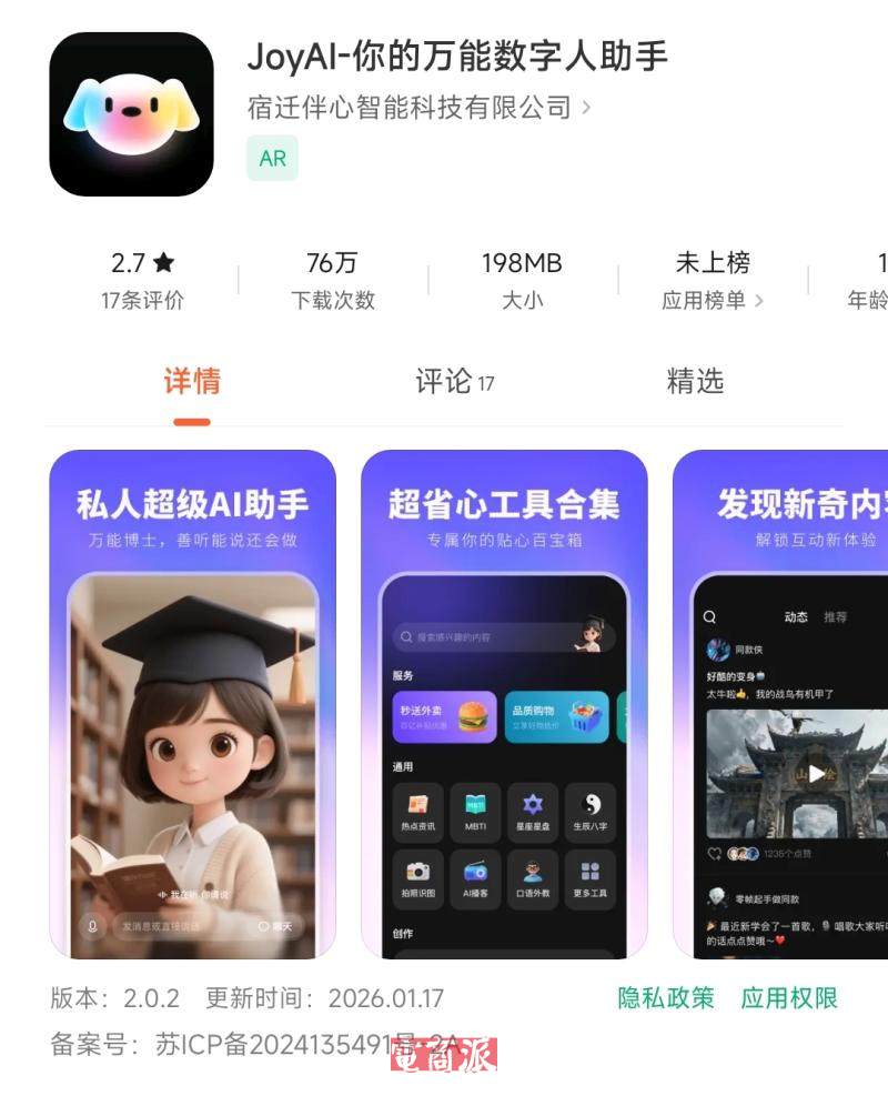 1月27日消息,京东加码AI生活服务赛道,上线了两款AI社交APP“东东”和“JoyAI”。