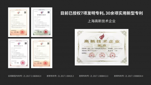 截至目前,艾芙尼已拥有7项授权发明专利、30余项实用新型专利,并获评“上海高新技术企业”,研发实力获得官方权威认证。