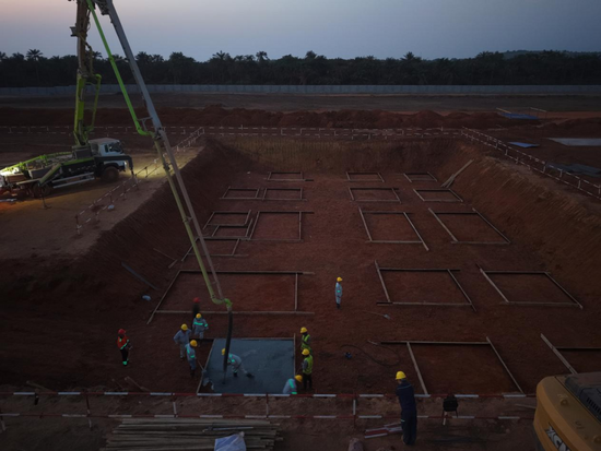 当地时间1月15日,五矿二十三冶几内亚铝业开发(二期)氧化铝项目主体工程Ⅱ标段第一方混凝土顺利浇筑,标志着项目正式进入主体施工阶段,为工程全面推进奠定了坚实基础。项目在几内亚国家铝业发展战略中具有关键地位。自项目中标以来,五矿二十三冶高度重视,迅速启动提级管理机制,确保各项决策迅速落地、执行到位。项目部超前策划、快速响应,着力克服前期物资与人力资源短期紧张等挑战,充分整合周边资源,高效完成前期筹备与综合楼基础破土动工,实现第一方混凝土成功浇筑。