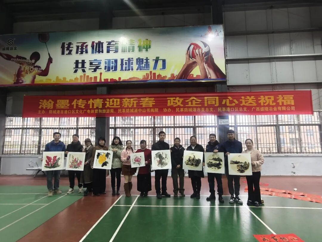 1月24日,民革港口区总支部联合港口区文旅局、民革防城港中山书画院、民革市直总支部在广西盛隆冶金有限公司盛隆佳园生活文化广场,开展“瀚墨传情迎新春,政企同心送祝福”送年画、送春联活动。