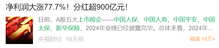 在取得亮眼利润的情况下,市场对上市险企分红的关注度有所提升。五家上市险企披露的2024年度分红情况显示,分红金额同比均上涨。