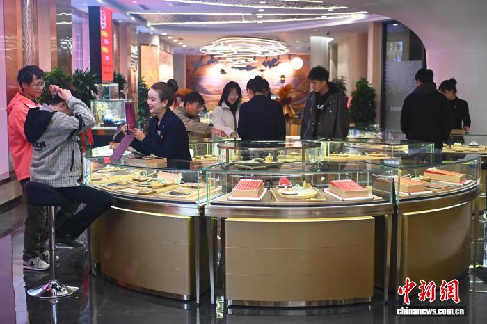 2025年11月11日,位于甘肃兰州市城关区的金城银楼内,市民选购国潮黄金饰品。(资料图)李亚龙摄