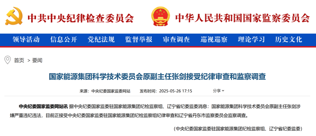 5月26日,国家能源集团科学技术委员会原副主任张剑接受纪律审查和监察调查。