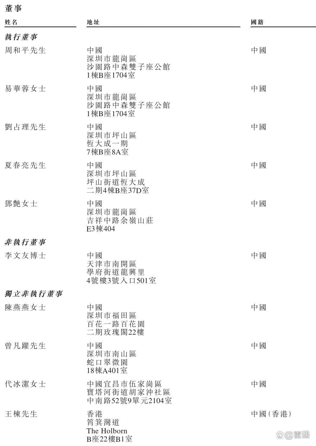 沃尔核材执行董事分别为周和平、易华蓉女士、刘占理、夏春亮、邓艶女士;非执行董事为李文友博士,独立非执行董事分别为陈燕燕女士、曾凡跃、代冰洁女士、王栋。