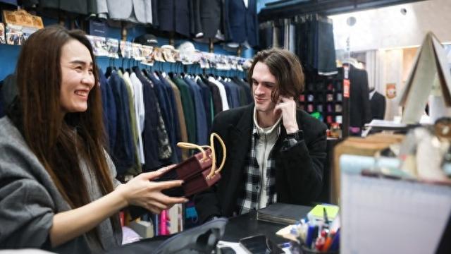 正是这样亲切而个性化的交流,吸引着越来越多的外国顾客。他们通过TripAdvisor(猫途鹰)、小红书等国内外旅游平台的推荐慕名而来。市场里,拖着登机箱、背着旅行包直接到店选款的外国人已成常态。为了赶上离沪航班,要求“加急定制,隔日取货”的场景屡见不鲜。记者走访多家热门店铺后发现,在一些专注于西装或旗袍定制的店里,外籍客群的销量占比甚至高达七成以上,成为了绝对的消费主力。