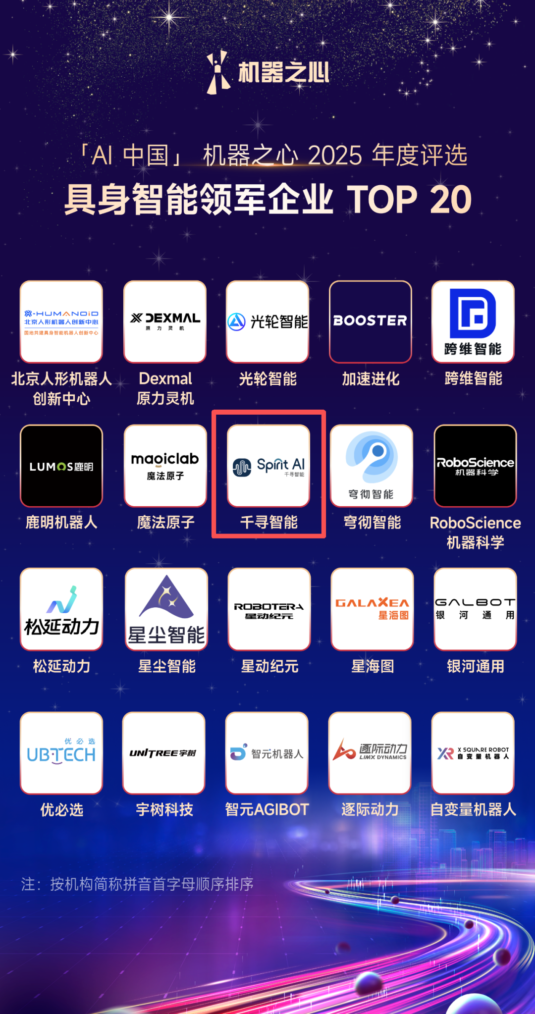 作为国内最具影响力的人工智能媒体之一,机器之心发布的年度评选一直被视为 AI 产业的风向标。千寻智能凭借在技术创新深度、场景落地广度以及生态构建上的综合表现,强势入选“具身智能领军企业 TOP20”。