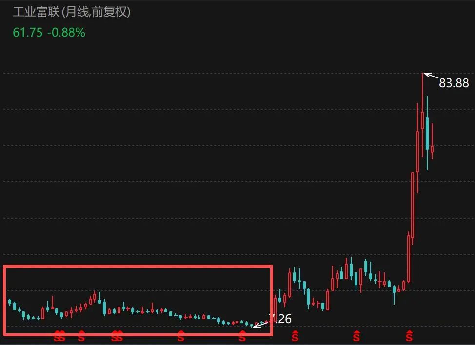 出货量、业绩大幅增长,带动工业富联股价短短几个月从19元/股附近一路飙升超过80元/股。