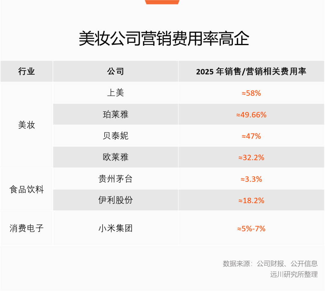 这种同质化造就了美妆品牌对流量的天生饥渴。翻开美妆上市公司的财报,会发现营销费用占比都高得一骑绝尘。